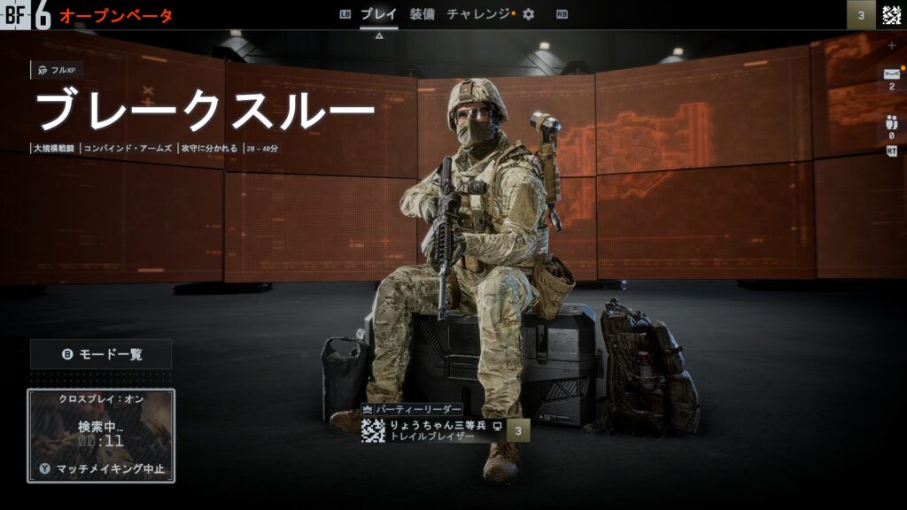 BF6のオープンベータに参加しています。BATTLEFIELDシリーズは初プレイです。